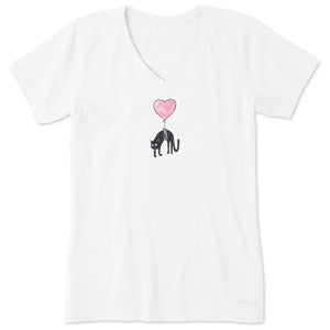 Life is Good. Women's Floating Kitty Balloon Short Sleeve Crusher-LITE Vee, Cloud White