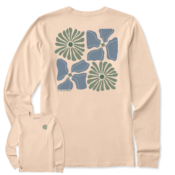 {"id":8640590774443,"title":"Life is Good Women's Groovy Quad Floral Long Sleeve Crusher Tee, Birch White","handle":"life-is-good-womens-groovy-quad-floral-long-sleeve-crusher-tee-birch-white","description":"\u003cp\u003eInstant classics don't just happen. We've spent over 20 years perfecting our original Crusher Tee, and its laid-back style has the staying power to prove it. Washed for everyday softness, this classic fit customer favorite barely skims the body for a look that's as easygoing as you are.\u003c\/p\u003e\n\u003cul\u003e\n\u003cli\u003e5.9 oz.\u003c\/li\u003e\n\u003cli\u003eSolid Colors: 100% USA Grown Cotton\u003c\/li\u003e\n\u003cli\u003eCrusher Heather Tees: 80% USA Grown Cotton\/20% Polyester\u003c\/li\u003e\n\u003cli\u003eGarment washed for softness.\u003c\/li\u003e\n\u003cli\u003eCotton\/Spandex rib at neck and cuff, and self-fabric taping from shoulder to shoulder.\u003c\/li\u003e\n\u003cli\u003ePrinted graphic.\u003c\/li\u003e\n\u003cli\u003eDo what you love. Love what you do. locker patch.\u003c\/li\u003e\n\u003cli\u003eImported\u003c\/li\u003e\n\u003c\/ul\u003e","published_at":"2026-02-13T13:11:17-05:00","created_at":"2026-01-24T17:21:50-05:00","vendor":"Life is Good","type":"Women's Crusher","tags":["new arrivals","w crusher","w crusher ls","w lig","W LIG CRUSHER","w ligtop","winter2025"],"price":3500,"price_min":3500,"price_max":3500,"available":true,"price_varies":false,"compare_at_price":null,"compare_at_price_min":0,"compare_at_price_max":0,"compare_at_price_varies":false,"variants":[{"id":46086334120107,"title":"Extra Small","option1":"Extra Small","option2":null,"option3":null,"sku":"198899676090","requires_shipping":true,"taxable":true,"featured_image":null,"available":true,"name":"Life is Good Women's Groovy Quad Floral Long Sleeve Crusher Tee, Birch White - Extra Small","public_title":"Extra Small","options":["Extra Small"],"price":3500,"weight":0,"compare_at_price":null,"inventory_quantity":2,"inventory_management":"shopify","inventory_policy":"deny","barcode":null,"requires_selling_plan":false,"selling_plan_allocations":[]},{"id":46086334152875,"title":"Small","option1":"Small","option2":null,"option3":null,"sku":"198899676106","requires_shipping":true,"taxable":true,"featured_image":null,"available":true,"name":"Life is Good Women's Groovy Quad Floral Long Sleeve Crusher Tee, Birch White - Small","public_title":"Small","options":["Small"],"price":3500,"weight":0,"compare_at_price":null,"inventory_quantity":3,"inventory_management":"shopify","inventory_policy":"deny","barcode":null,"requires_selling_plan":false,"selling_plan_allocations":[]},{"id":46086334185643,"title":"Medium","option1":"Medium","option2":null,"option3":null,"sku":"198899485777","requires_shipping":true,"taxable":true,"featured_image":null,"available":true,"name":"Life is Good Women's Groovy Quad Floral Long Sleeve Crusher Tee, Birch White - Medium","public_title":"Medium","options":["Medium"],"price":3500,"weight":0,"compare_at_price":null,"inventory_quantity":5,"inventory_management":"shopify","inventory_policy":"deny","barcode":null,"requires_selling_plan":false,"selling_plan_allocations":[]},{"id":46086334218411,"title":"Large","option1":"Large","option2":null,"option3":null,"sku":"198899676113","requires_shipping":true,"taxable":true,"featured_image":null,"available":true,"name":"Life is Good Women's Groovy Quad Floral Long Sleeve Crusher Tee, Birch White - Large","public_title":"Large","options":["Large"],"price":3500,"weight":0,"compare_at_price":null,"inventory_quantity":9,"inventory_management":"shopify","inventory_policy":"deny","barcode":null,"requires_selling_plan":false,"selling_plan_allocations":[]},{"id":46086334251179,"title":"X-Large","option1":"X-Large","option2":null,"option3":null,"sku":"198899676120","requires_shipping":true,"taxable":true,"featured_image":null,"available":true,"name":"Life is Good Women's Groovy Quad Floral Long Sleeve Crusher Tee, Birch White - X-Large","public_title":"X-Large","options":["X-Large"],"price":3500,"weight":0,"compare_at_price":null,"inventory_quantity":9,"inventory_management":"shopify","inventory_policy":"deny","barcode":null,"requires_selling_plan":false,"selling_plan_allocations":[]},{"id":46086334283947,"title":"XX-Large","option1":"XX-Large","option2":null,"option3":null,"sku":"198899676137","requires_shipping":true,"taxable":true,"featured_image":null,"available":true,"name":"Life is Good Women's Groovy Quad Floral Long Sleeve Crusher Tee, Birch White - XX-Large","public_title":"XX-Large","options":["XX-Large"],"price":3500,"weight":0,"compare_at_price":null,"inventory_quantity":5,"inventory_management":"shopify","inventory_policy":"deny","barcode":null,"requires_selling_plan":false,"selling_plan_allocations":[]},{"id":46086334316715,"title":"XXX-Large","option1":"XXX-Large","option2":null,"option3":null,"sku":"198899676144","requires_shipping":true,"taxable":true,"featured_image":null,"available":true,"name":"Life is Good Women's Groovy Quad Floral Long Sleeve Crusher Tee, Birch White - XXX-Large","public_title":"XXX-Large","options":["XXX-Large"],"price":3500,"weight":0,"compare_at_price":null,"inventory_quantity":2,"inventory_management":"shopify","inventory_policy":"deny","barcode":null,"requires_selling_plan":false,"selling_plan_allocations":[]}],"images":["\/\/jakesgoodnewport.com\/cdn\/shop\/files\/153596-1.webp?v=1769293383","\/\/jakesgoodnewport.com\/cdn\/shop\/files\/153596-2.webp?v=1769293383","\/\/jakesgoodnewport.com\/cdn\/shop\/files\/153596-3.webp?v=1769293383"],"featured_image":"\/\/jakesgoodnewport.com\/cdn\/shop\/files\/153596-1.webp?v=1769293383","options":["Size"],"media":[{"alt":null,"id":32505138479275,"position":1,"preview_image":{"aspect_ratio":1.0,"height":600,"width":600,"src":"\/\/jakesgoodnewport.com\/cdn\/shop\/files\/153596-1.webp?v=1769293383"},"aspect_ratio":1.0,"height":600,"media_type":"image","src":"\/\/jakesgoodnewport.com\/cdn\/shop\/files\/153596-1.webp?v=1769293383","width":600},{"alt":