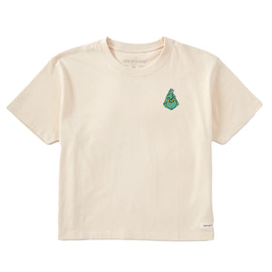 Life is Good. Women's Grinch Mini Face Short Sleeve Crusher Boxy Tee, Putty White