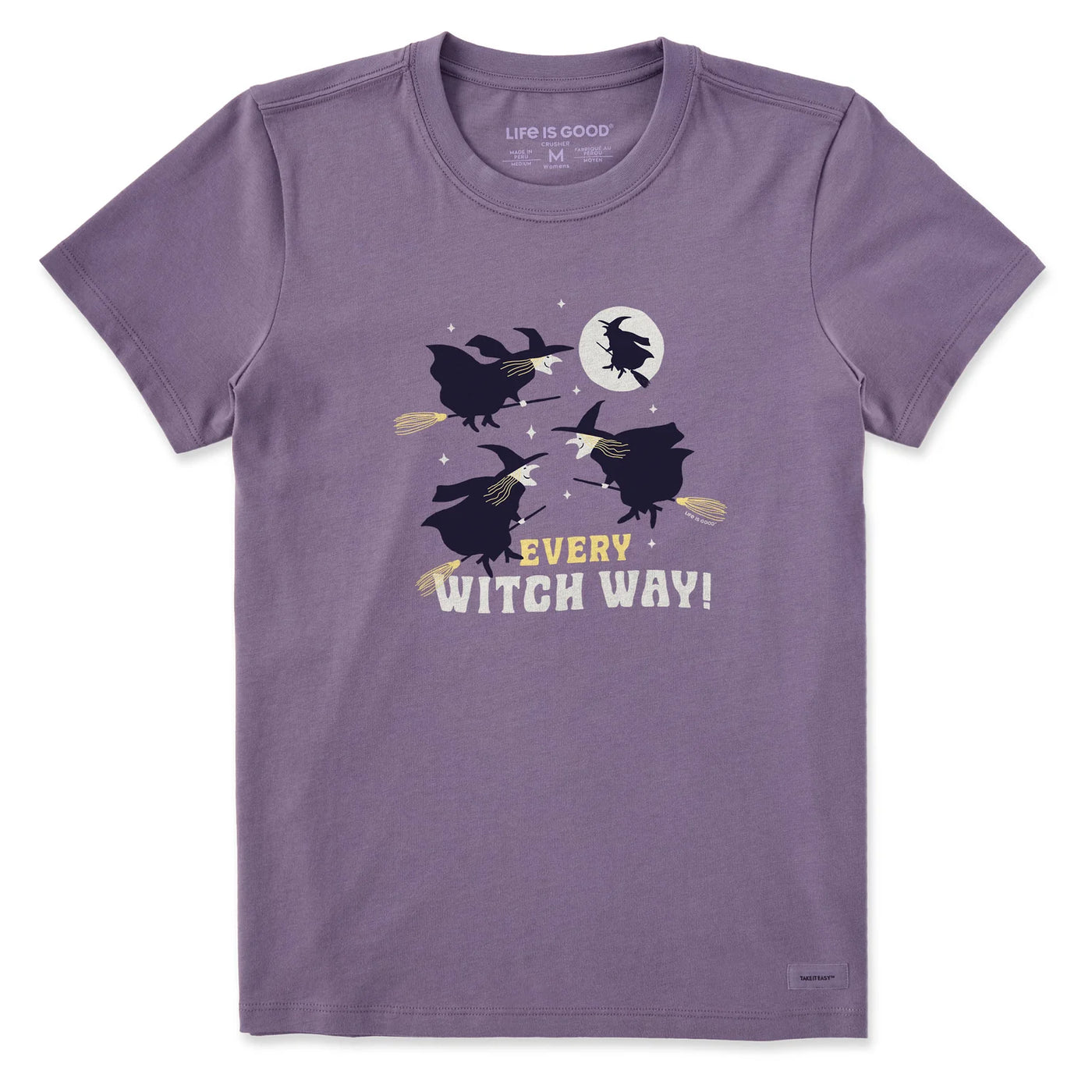 Life is Good. Women's Every Witch Way Short Sleeve Crusher Tee, Dusk Purple