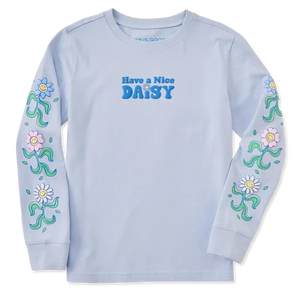 Life is Good. Kids Have A Nice Daisy Long Sleeve Crusher Tee, Glacier Blue
