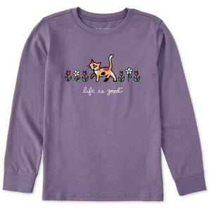Life is Good. Kids Al with Flowers Long Sleeve Crusher Tee, Dusk Purple