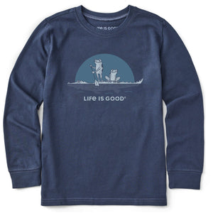 Life is Good. Kids Frogs on a Croc Long Sleeve Crusher Tee, Darkest Blue