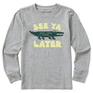Life is Good. Kids See Ya Later Alligator Long Sleeve Crusher Tee, Heather Gray