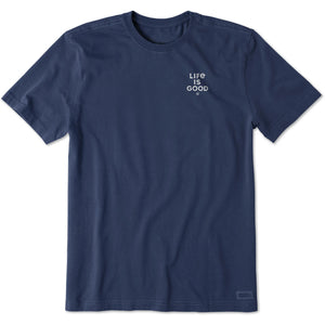 Life is Good. Men's Bert's Stacked LIG Short Sleeve Crusher Tee, Darkest Blue