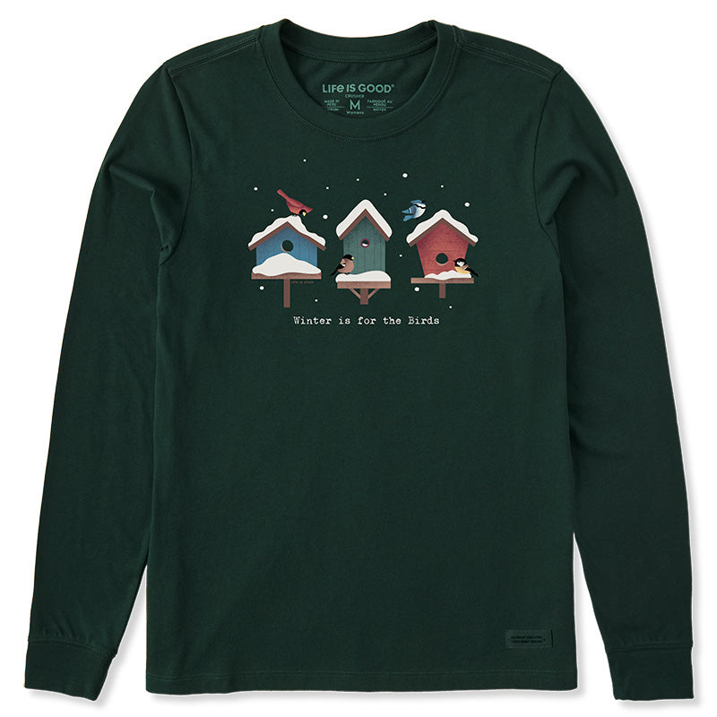 Life is Good. Women's Winter is For The Birds Long Sleeve Crusher Tee, Treeline Green