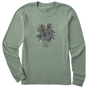 Life is Good. Women's Pinecone Bouquet Long Sleeve Crusher Tee, Moss Green