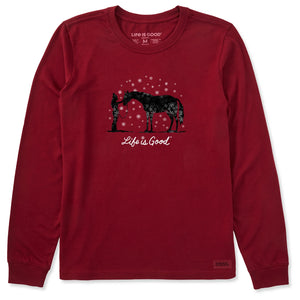 Life is Good. Women's Holiday Horse Long Sleeve Crusher Tee, Adirondack Red