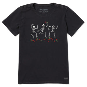 Life is Good. Women's Skeletons and Roses Short Sleeve Crusher Tee, Faded Black